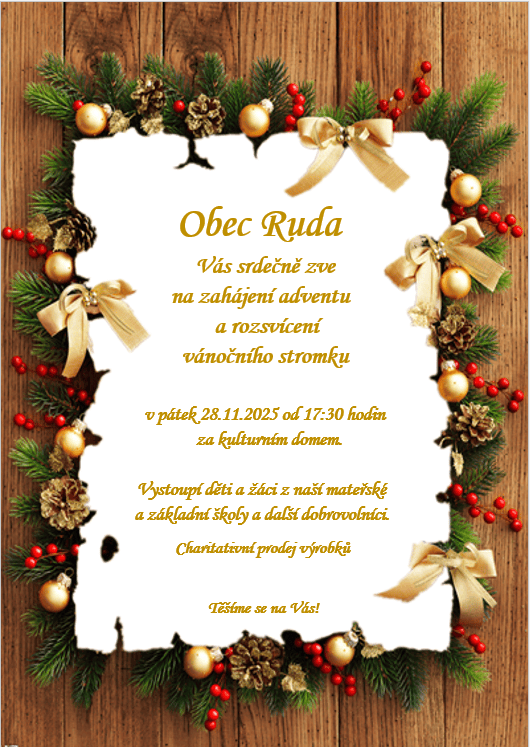 Zahájení adventu a rozsvícení vánočního stromku - 28.11.2025